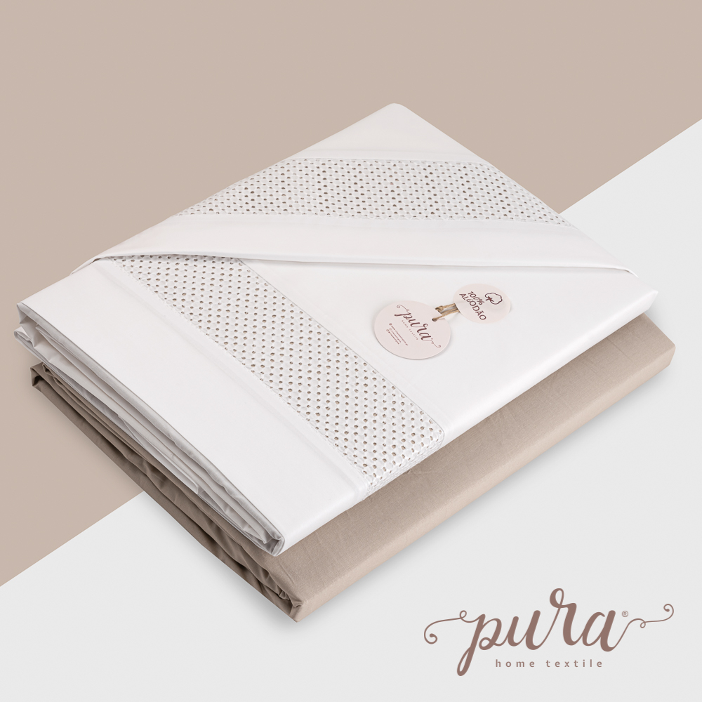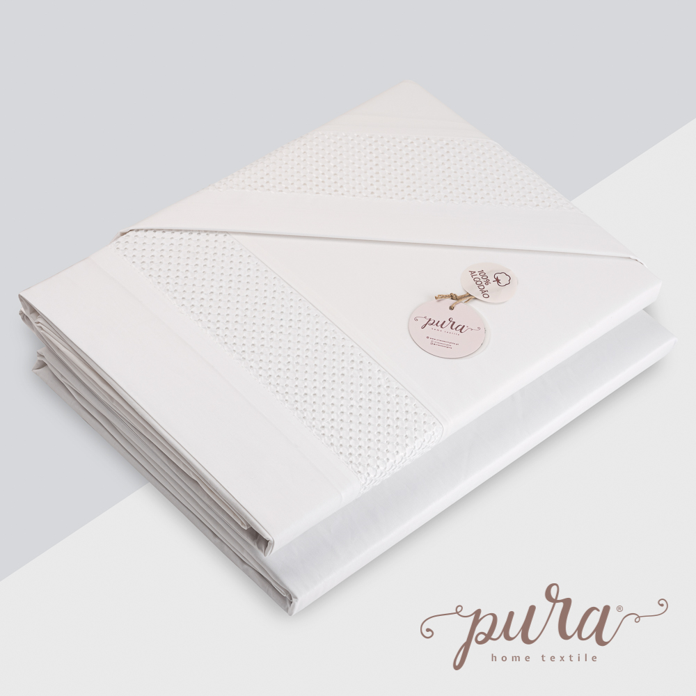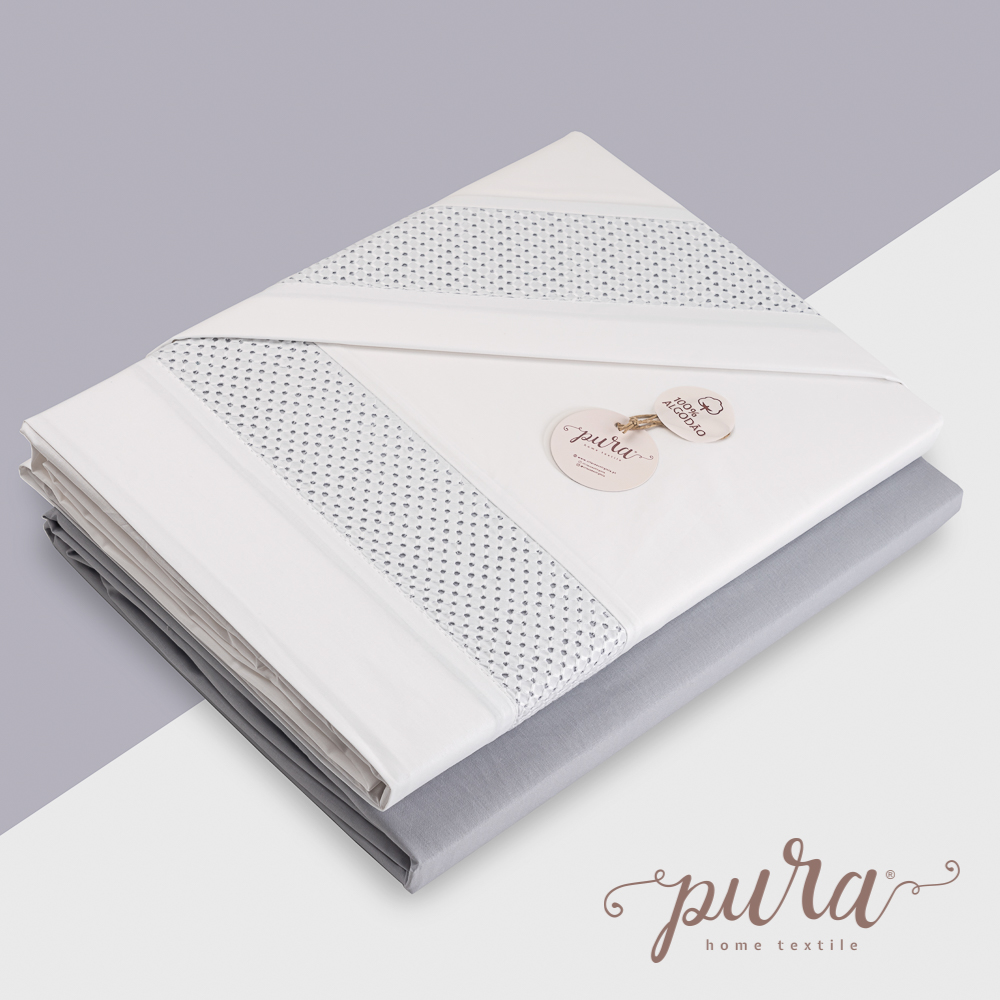 Um jogo de cama em 100% algodão percal 200 fios/m2, fabricado com a garantia da certificação OEKO-TEX e com um acabamento macio que confere aos lençóis um toque suave, proporcionando um maior conforto para que tenha um descansado saudável e um sono reparador.